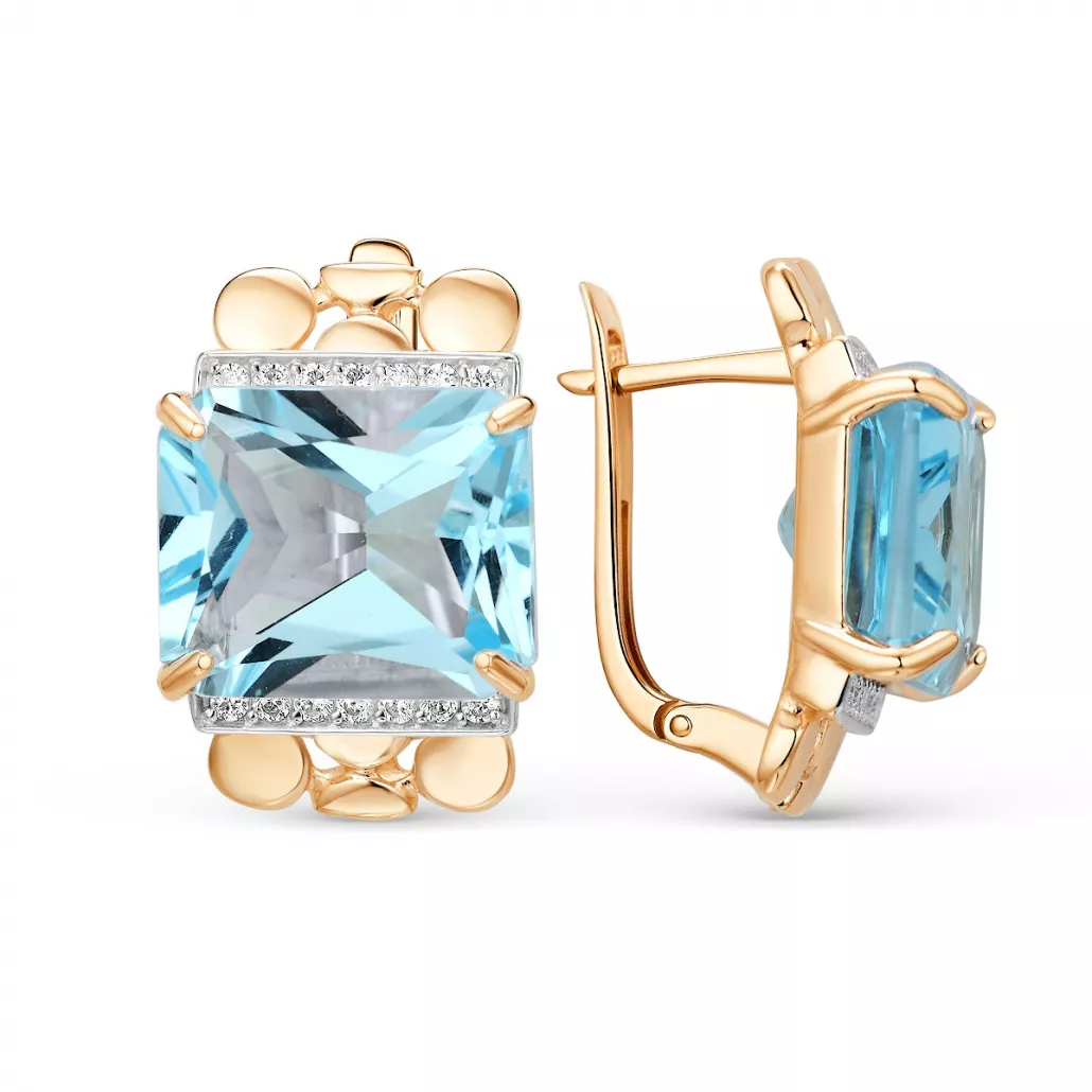 Серьги с топазом и фианитом из золота