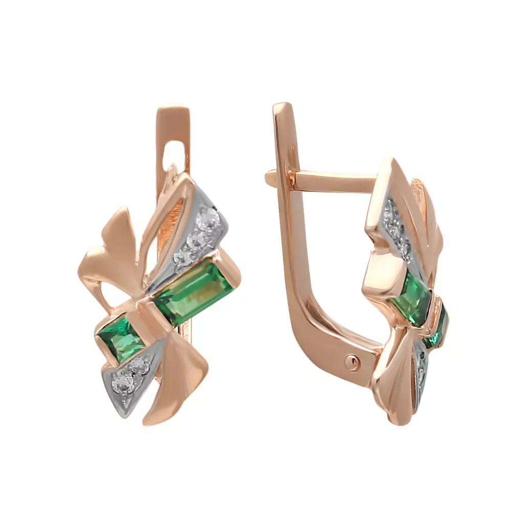 - Серьги с фианитом и изумрудом из золота