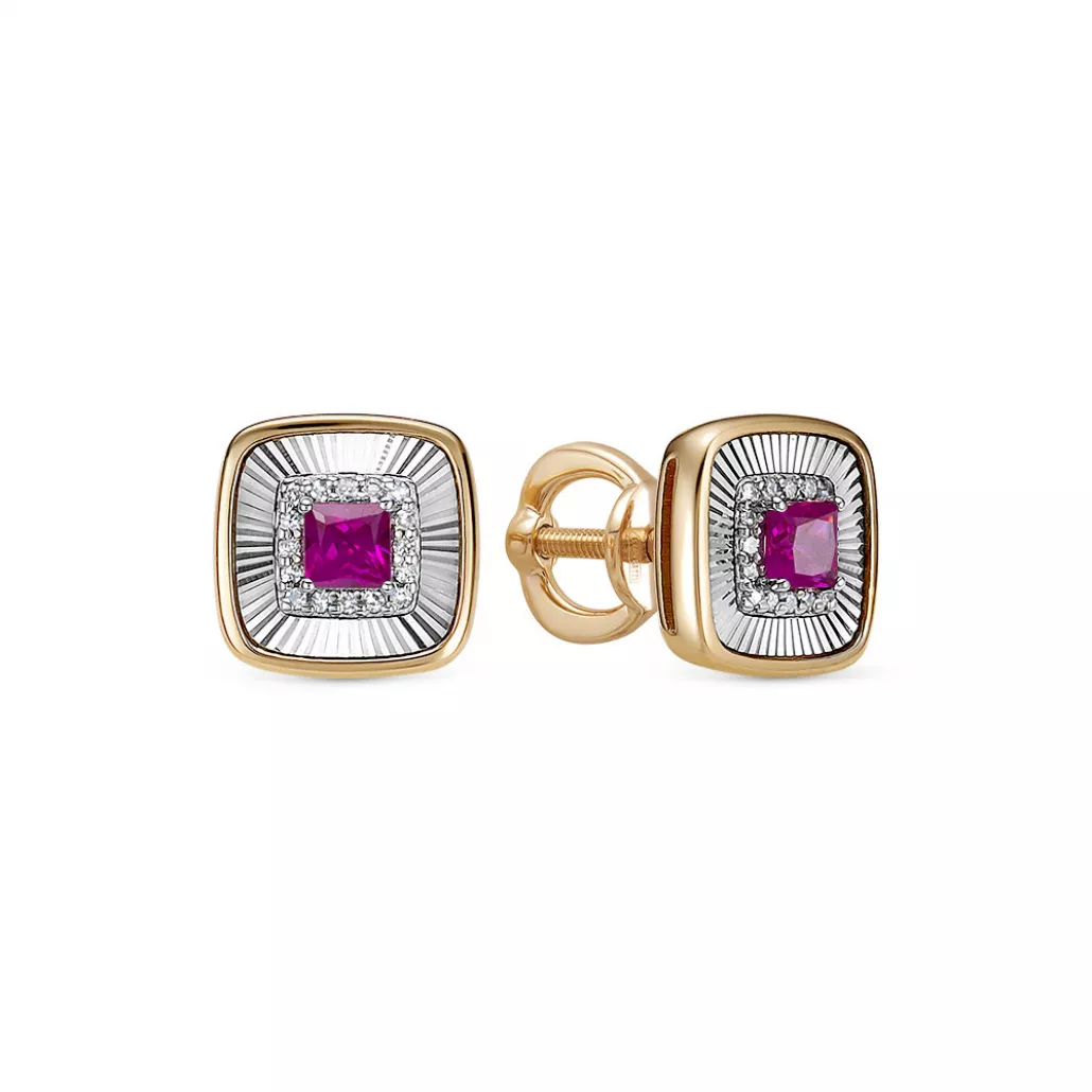Пусеты с бриллиантами с рубином из золота